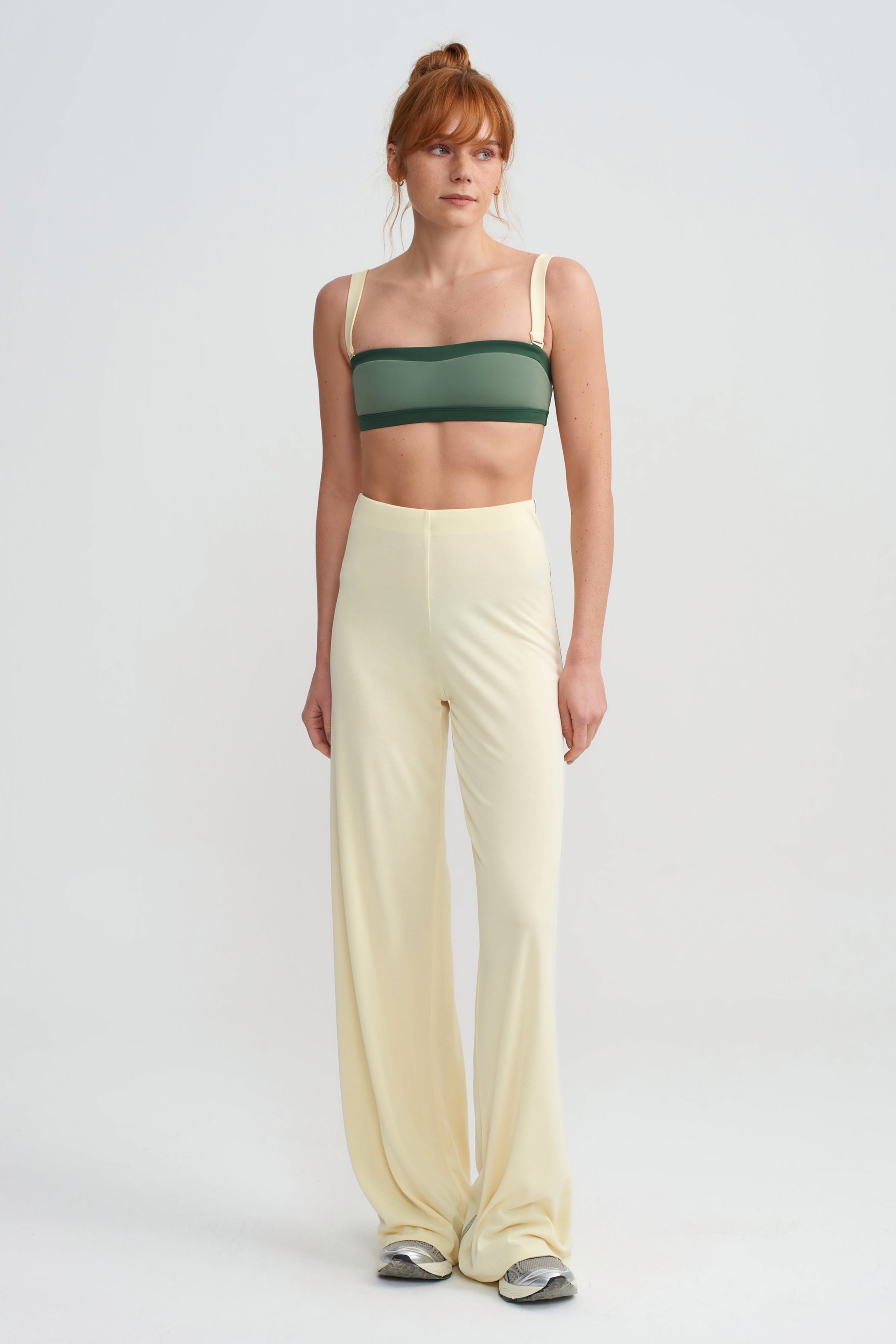 Our best-selling STUDIO PANTS return this summer in one of the season’s most sought-after shades: butter yellow. A dark brown decorative stitch detail runs along the outer leg, adding a subtle contrast.