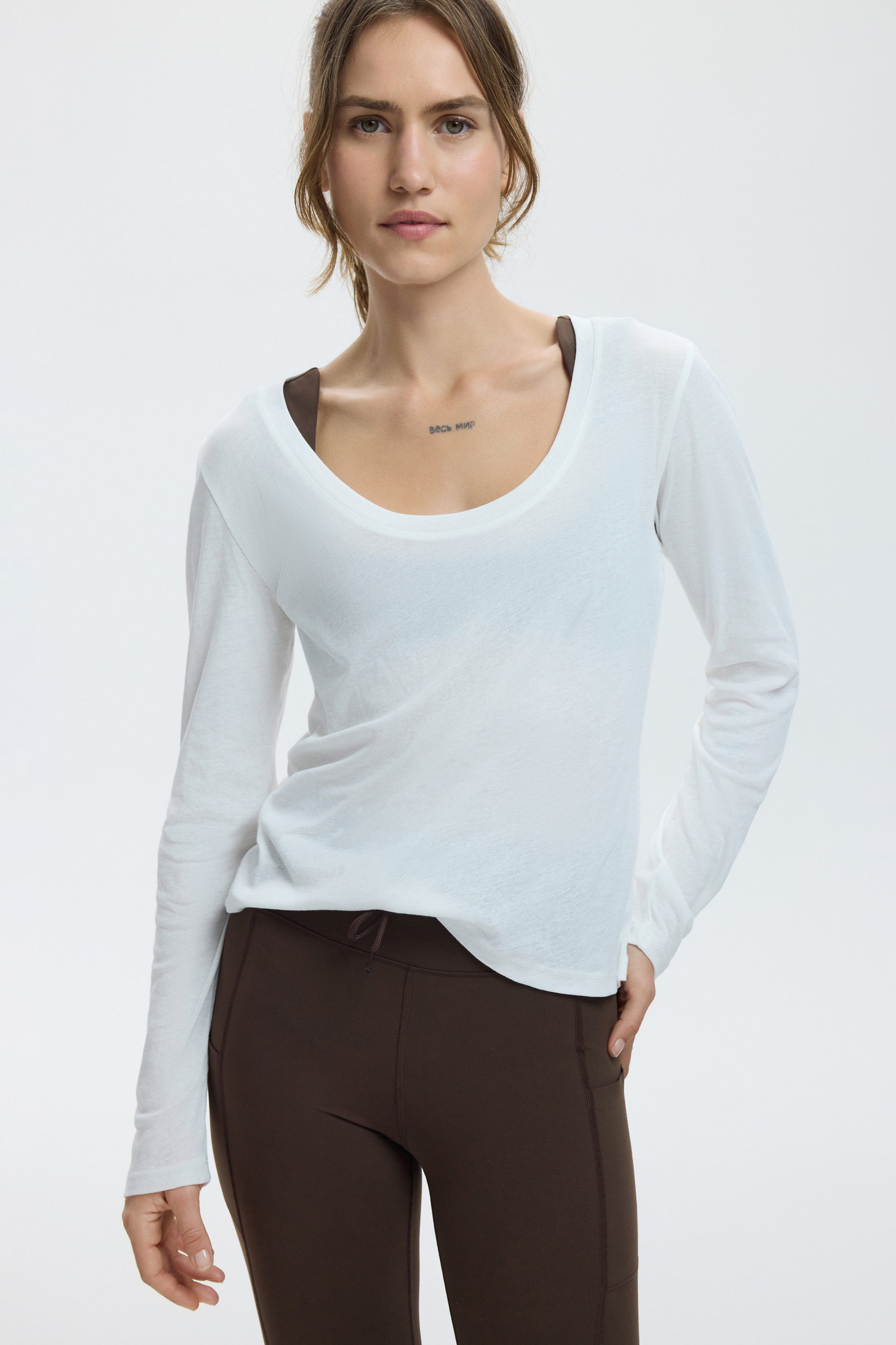 Made from 100% cotton fabric with a soft texture, this long-sleeve T-shirt offers all-day comfort thanks to its lightweight and breathable structure. Its gently fitted cut and clean silhouette make it an ideal essential piece, perfect for wearing on its own or in layered outfits.