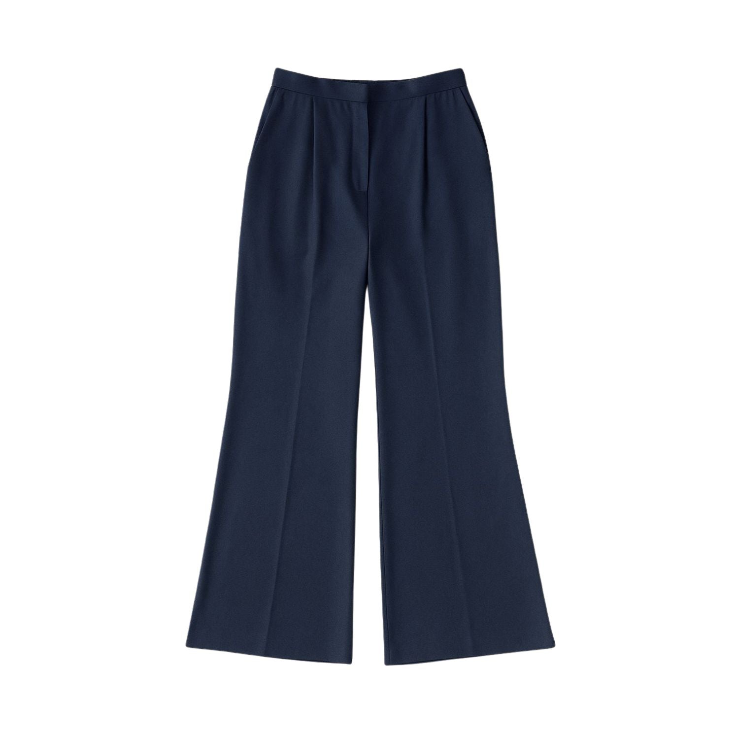 They feature paneling on the upper legs and a flared silhouette from below the knee. This shape provides freedom of movement while also creating an elongating effect on the silhouette. The pattern has been carefully crafted with attention to the drape of the fabric. Side pockets and refined stitching details give the trousers a clean and polished appearance.